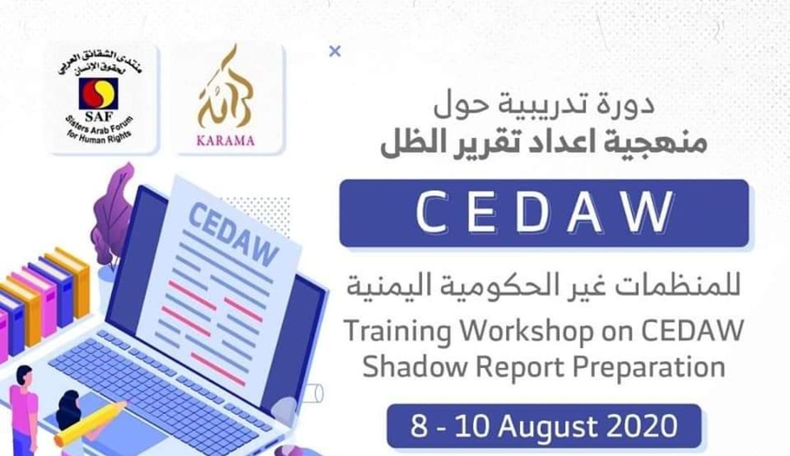 The Center of Strategic Studies to Support Women & Children participated in the training workshop on the Methodology of (CEDAW) Shadow Report preparation for non-governmental organizations on Zoom from 8 - 10 August 2020, which organized by Sisters Arab Forum for Human Rights (SAF) in partnership with Karama Organization